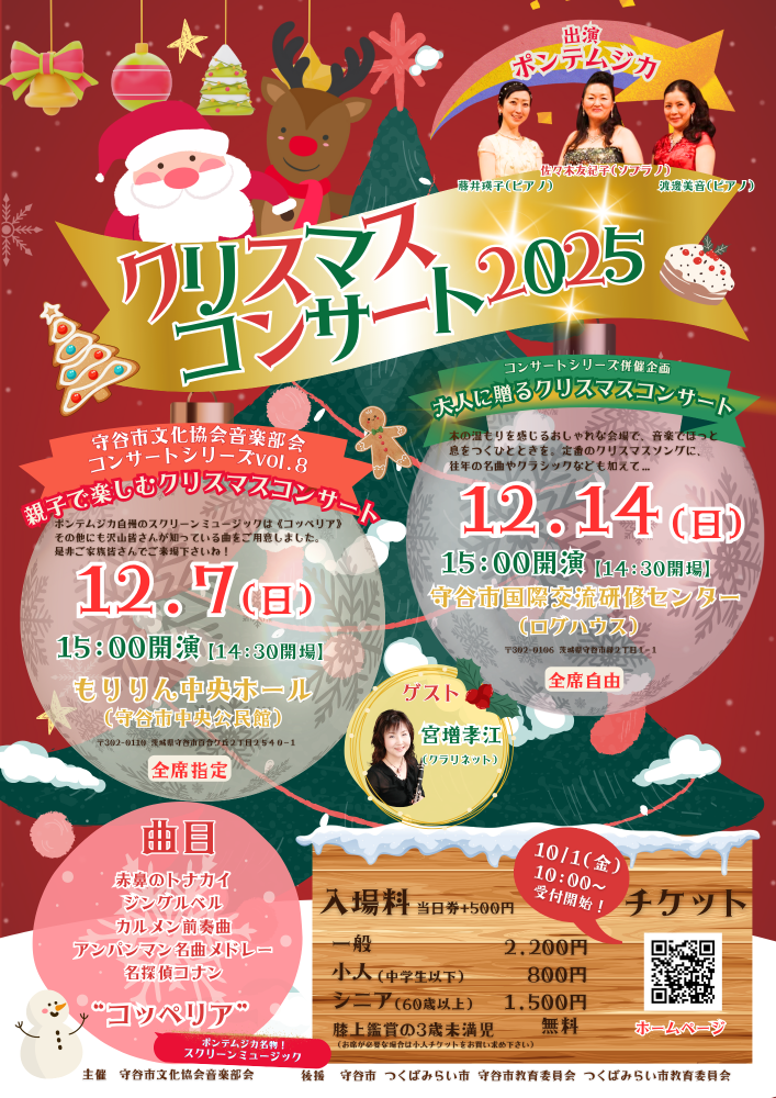 この度、ご案内しておりました"クリスマスコンサート2025"のチケット料金のうち、チラシ記載の【シニア料金】の適用年齢に誤りがありました。心よりお詫び申し上げます。